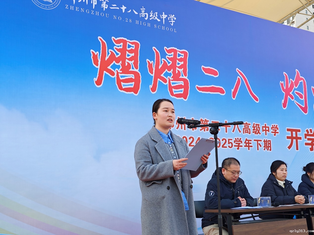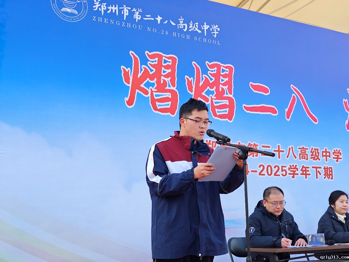 高三1班的张翔宇同学作为学生代表上台发言。他回顾了过去的学习生活,表达了对新学期的期待与决心,号召全体同学在新学期里继续努力,勇敢追梦。张翔宇同学的发言充满激情,展现了二十八中学子青春的风采。
