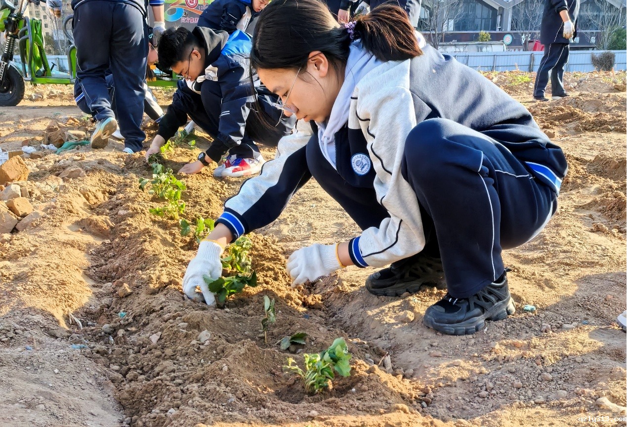 紧接着,学生们化身为勤劳的小农夫,小心翼翼地将作物种子播撒进土壤。大家相互配合,有的负责挖穴,有的负责点种,还有的负责覆土,欢声笑语回荡在校园的上空。完成播种后,又一起给土地灌溉,清澈的水流滋润着土地,也仿佛浇灌着大家心中的憧憬。